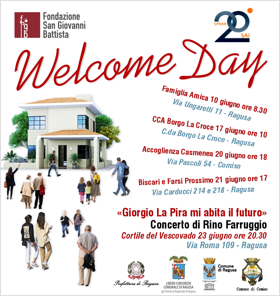 I progetti SAI “Farsi prossimo” e “Biscari” con sede in via Carducci, 214 celebrano il “Welcome day” il 21 giugno con “I colori dell’accoglienza” dalle 17 alle 20. All’ingresso viene ospitata una esposizione dedicata al ventennale della rete nazionale di accoglienza integrata. Nel corso del pomeriggio, si tiene un laboratorio di braccialetti, un torneo ping pong e, in chiusura, una aperitivo da condividere con tutti i partecipanti.